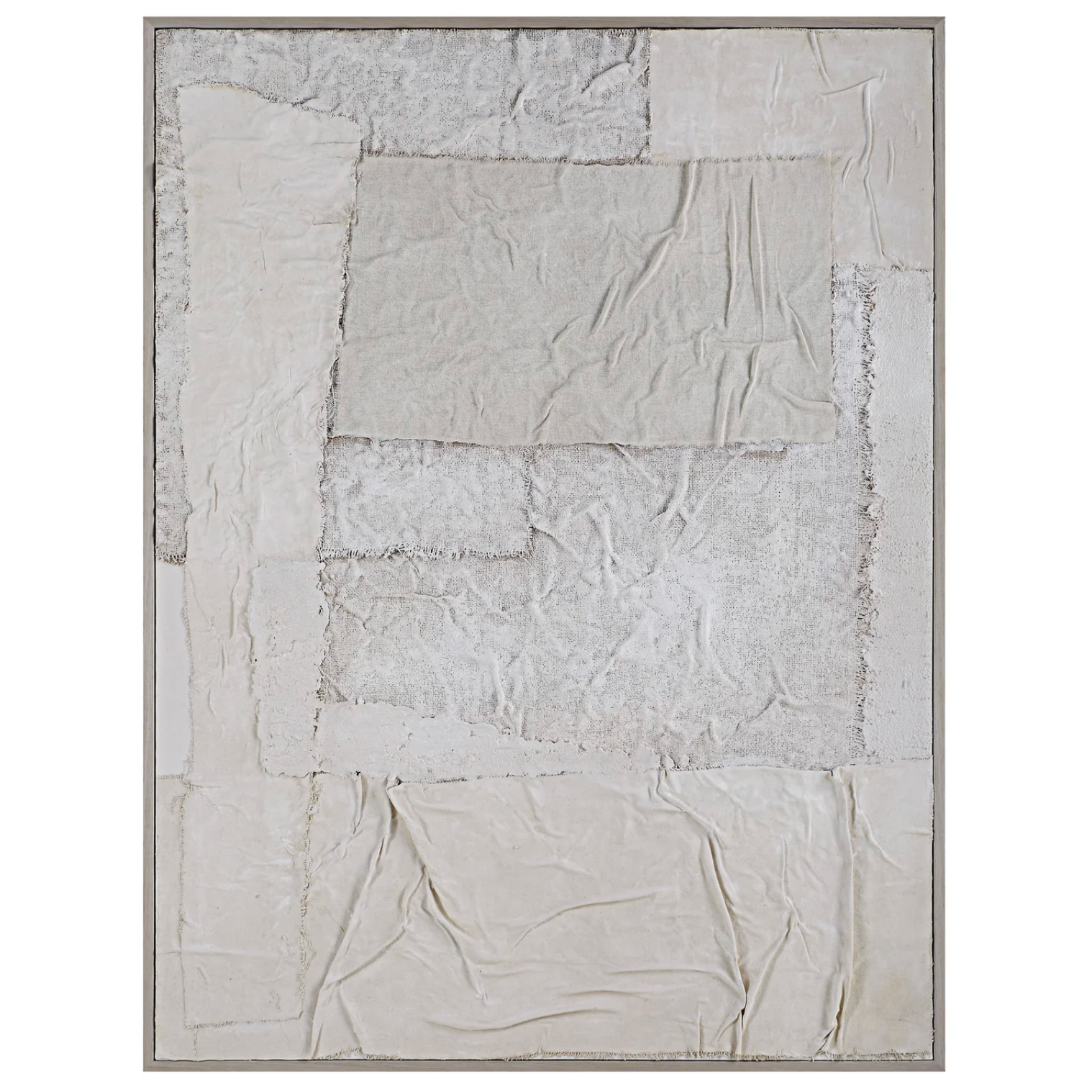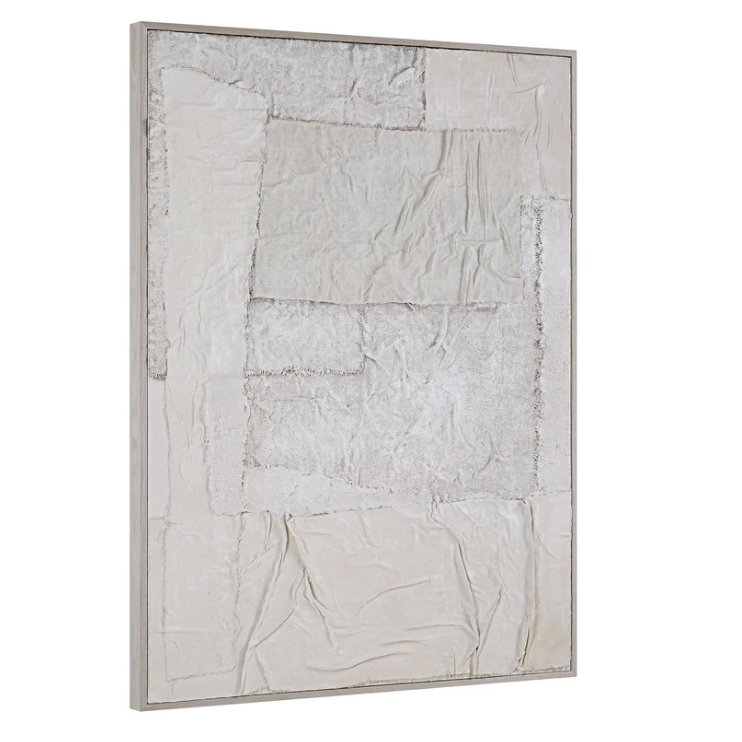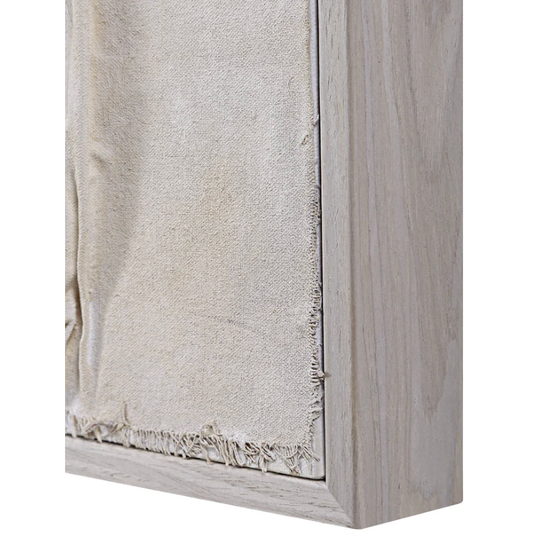 A vision in mixed media, this canvas wall art is poised to deliver modern style to your decorating scheme. Framed in light walnut, this collage blends burlap, cloth and paper to create a striking impact that's perfectly at home in contemporary settings.