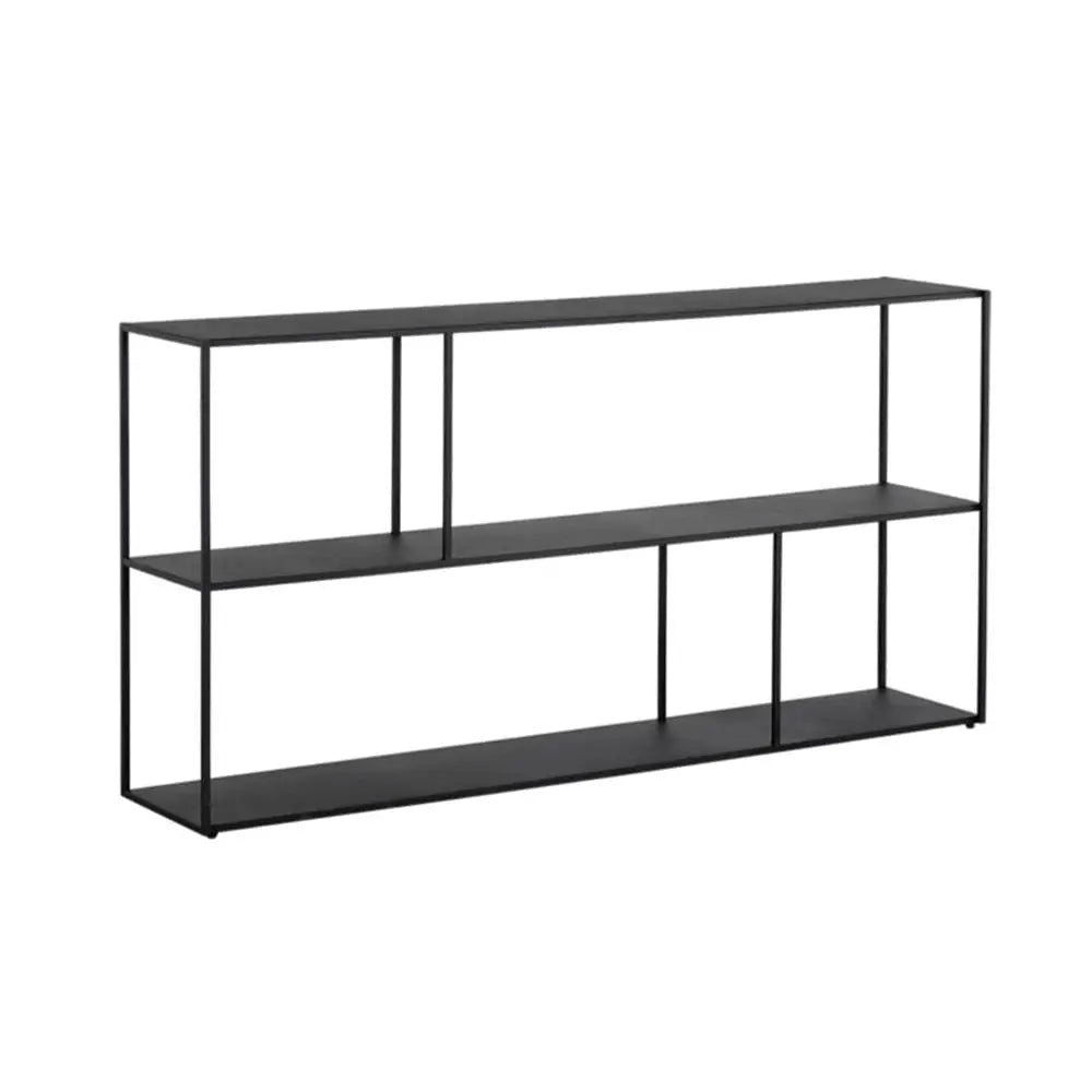 Add style and warmth to living and office spaces with this well-designed low bookcase in matte black iron. Can be placed in pairs or multiples for added impact and functionality. Anti-tipping kit included.
