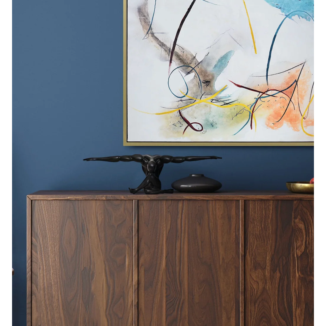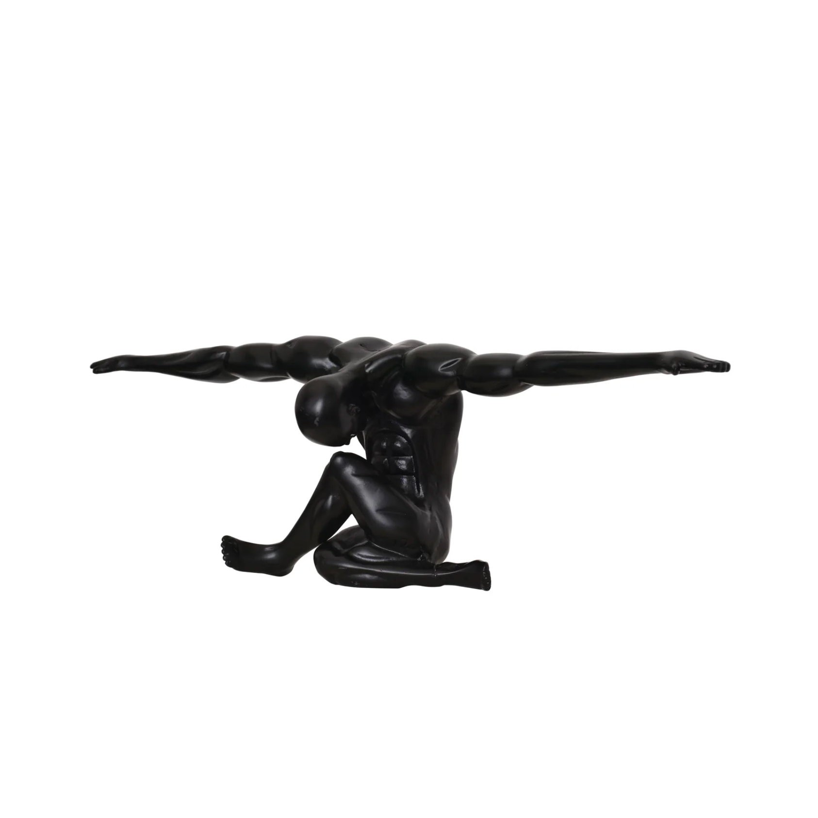 Crafted from durable aluminum and finished in a smooth matte black powder coating, the sculpture showcases a powerful human form frozen in motion—arms extended, body grounded—creating a sense of tension, balance, and expression. Its sculptural silhouette makes it an instant focal point, whether styled on a console, shelf, or coffee table.