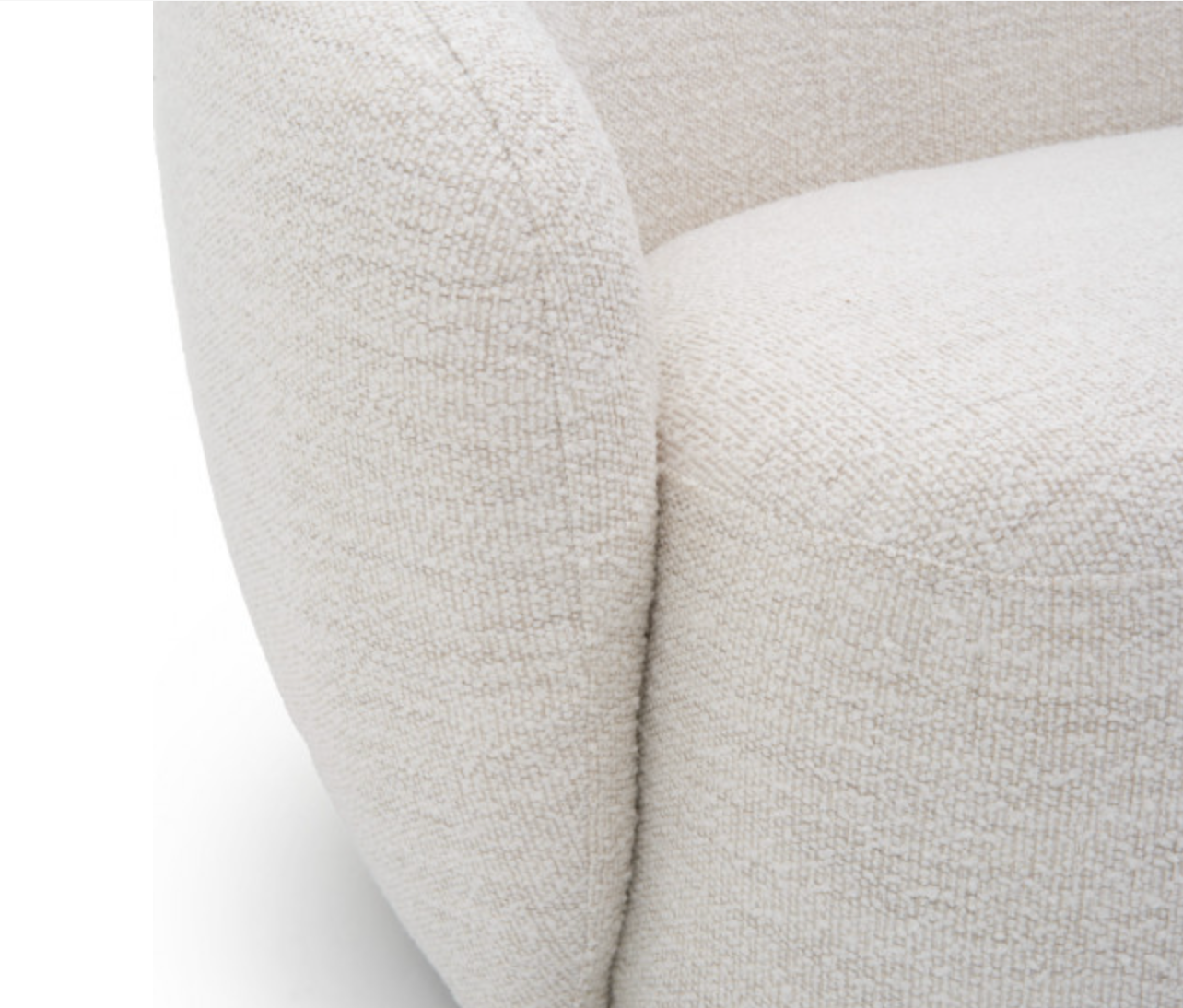 Succumb to the inviting curves and luxurious comfort of the Verona modular love-seat. Wrapped in on-trend bouclé fabric and generously padded with high-density foam, this modern piece offers a true haven of tranquility. Its rounded silhouette and refined off-white tone create an effortlessly sophisticated statement, perfect for contemporary living spaces.